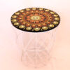 Erleben Sie die Schönheit und Einzigartigkeit unseres handbemalten Mandala Beistelltisches, der als Couchtisch oder Wohnzimmertisch eine stilvolle Ergänzung für Ihr Zuhause darstellt.